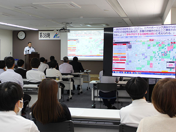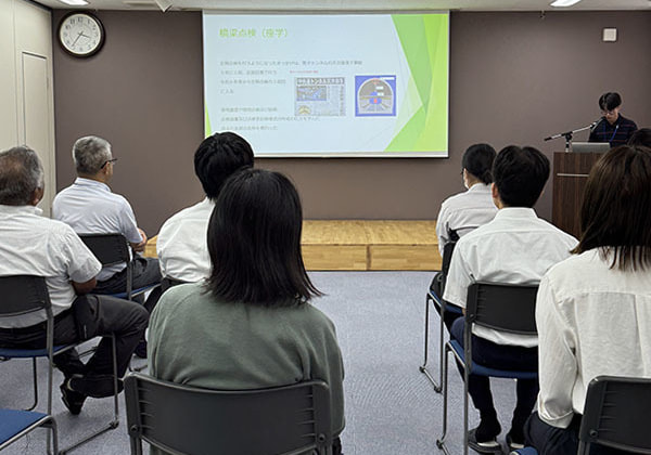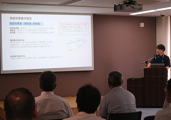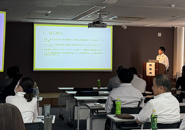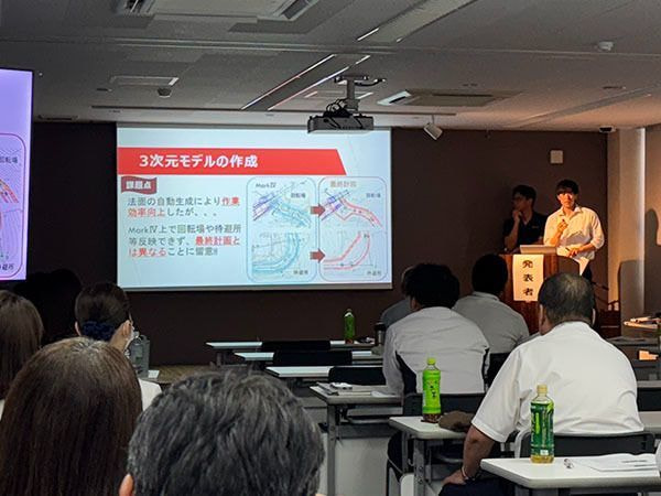 用地取得マネジメント、総合評価方式の入札制度の概要、ロックシェッド長寿命化における新技術の活用法、落石防護柵更新設計の調査、高知県における土砂災害発生リスク素因の考察、地すべり概要と地下水影響に関する考察等の様々な分野について発表が行われ、充実した発表会となりました。また、発表会当日までに発表者の皆さんが熱心に練習する姿もあり、忙しい中で発表会までにしっかり準備してきたことが伺えました。