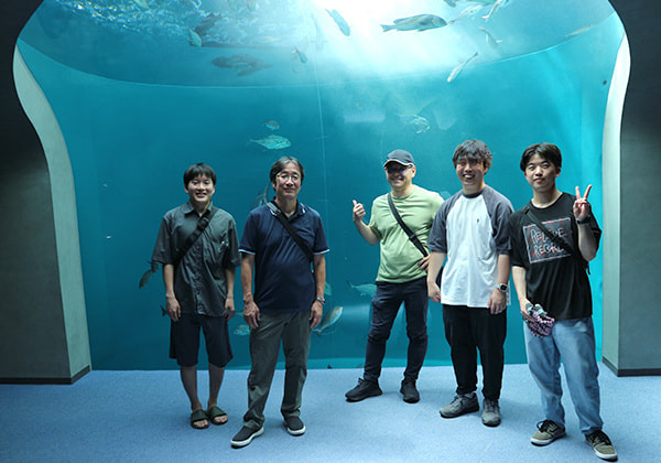 朝、会社を出発しバスで四国水族館に向かいました。夏休み期間であったこともあり子供連れのご家族でにぎわっていました。大きなエイやサメ、動き回るカワウソや小さな魚などに癒され、イルカショーやアシカの餌やり体験、水族館限定のグルメ等を十分に堪能できました。