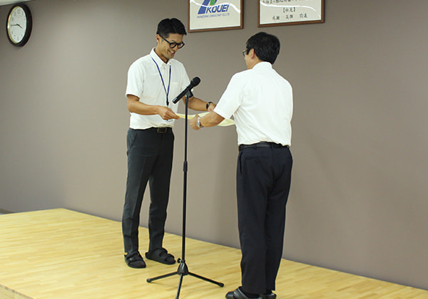 そして後半では、部署別・個人別の第37期振返りと第38期の目標の発表が行われ、その後今年のMVP受賞者の発表と表彰があり、社員の投票の結果、技術3部技術2課の宮内係長が受賞しました。