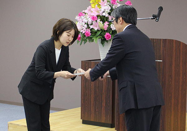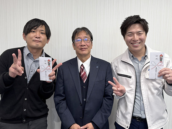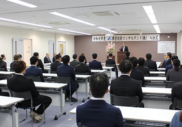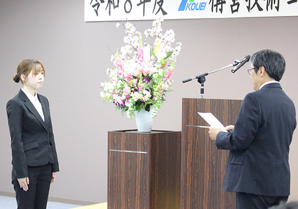 新入社員の2名は緊張した面持ちでしたが、先輩社員からの優しい歓迎の言葉もあり、和やかな雰囲気の中式が行われました。