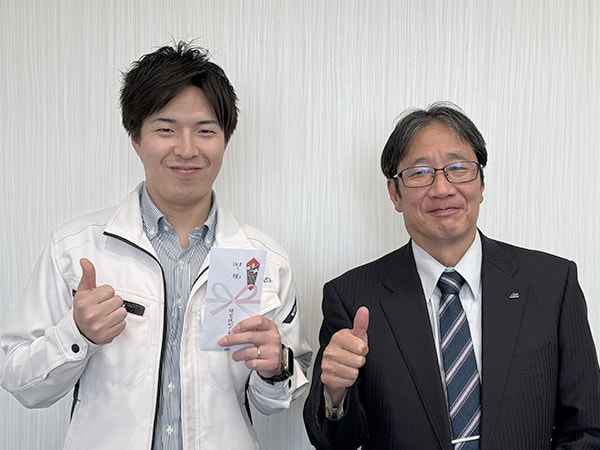 弘瀨係長と谷末主任は「2人で資格を取得することが出来て良かったです。今後国交省業務を任せてもらえるよう頑張りたいと思います」と意気込んでいました。