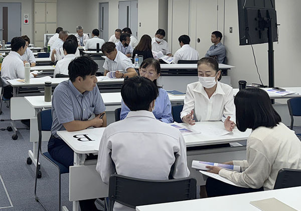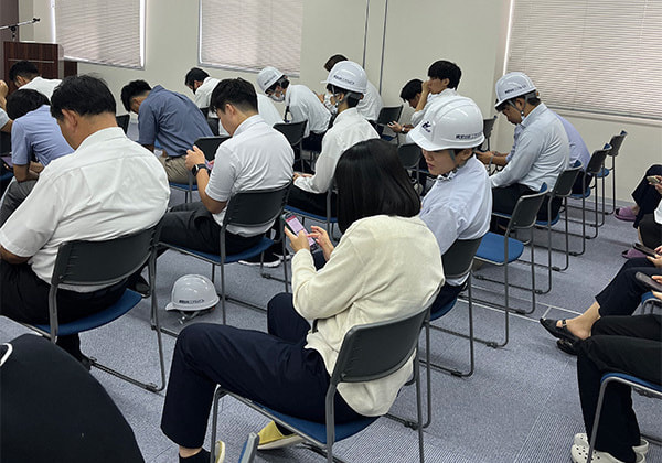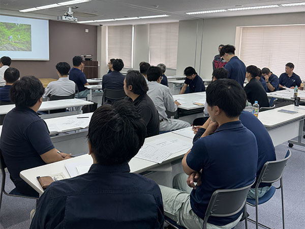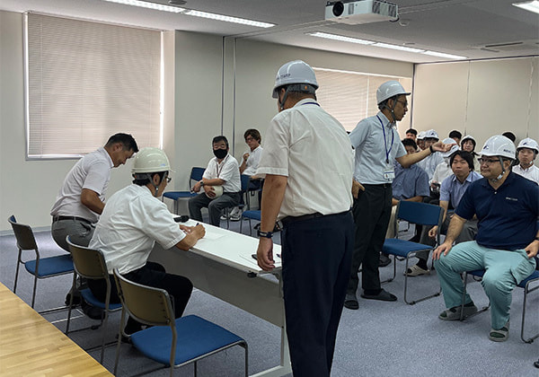 午前中の安全衛生講習会は講師の先生をお招きし、当社社員と協力会社の皆さんにもご参加いただきました。講習会では現場作業での安全対策についてグループワークなどを行いながら確認や見直しを行いました。