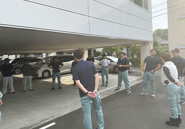 社員全員で防災アプリの確認
