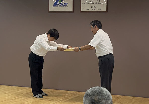 川北主任は「4回目の挑戦でやっと合格し技術士になることができました。試験勉強の際にご協力いただいた皆さん、ありがとうございました。今後、新たな分野の挑戦も視野に入れ、業務に携わりたいと思います。」と意気込んでいました。