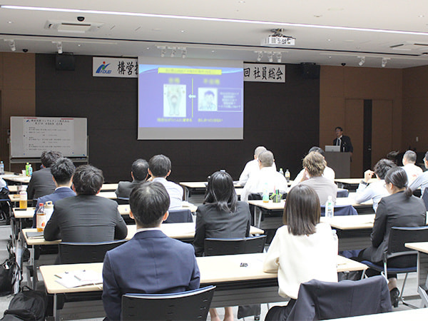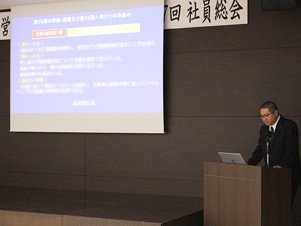 社員総会は、ちより街テラス3階ちよテラホールにて開催され、「経営理念、第38期の総括と第39期に向けての方針」の発表を行い、その後、各部署・各社員から第39期の目標、取組みについての発表を行いました。