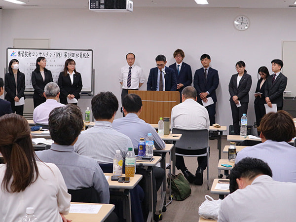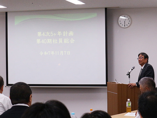 社員総会は、県民文化ホールにて開催され、「経営理念、第39期の総括と第40期の事業計画」の発表を行い、その後、各部署・各社員から第40期の目標、取組みについての発表を行いました。