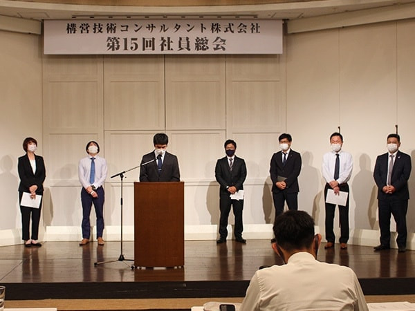 社員総会は、ラヴィータにて、第36期の総括と評価・課題、今後の方向性及び事業計画の発表を行い、その後、各部署・各社員から第37期の目標、取組みについての発表と第36期で最も活躍した社員を表彰する「年間MVP」の発表を行いました。