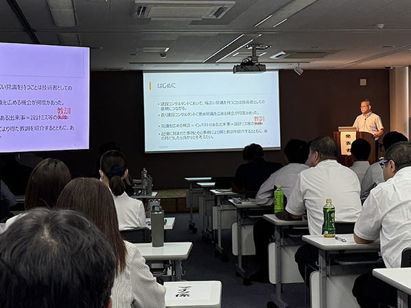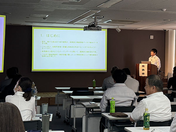 毎年、若手社員から中堅社員まで、10人程度の発表があります。発表内容も若手社員は学生時代の研究テーマや業務報告、中堅社員は日常業務の疑問点を追及したものや模型実験を行ったものなど幅広い内容となっております。令和7年度の発表タイトルは以下の通りでした。