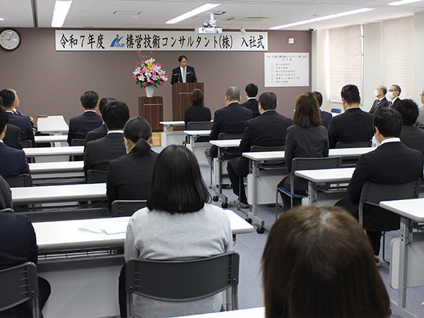 この度は入社おめでとうございます。先ほどから社長・先輩方から歓迎の言葉や構営技術で頑張っていく上での貴重なお話がありました。新入社員当時は実感できなくても一年二年と経験を積むに従い、こういうことだったのかと理解でき、成長していく一助けになると思っています。