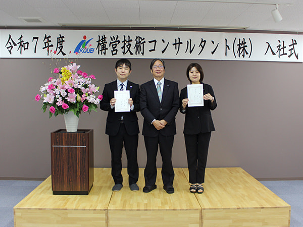 お二人が、最終的に当社に入社することを決断したのは皆さん個々の決断です。その決断が間違っていなかった。何年か後、年十年か後、はたまた、当社を定年退職する時その決断が間違っていなかった、当社に就職したことに一点の悔いは無しと思ってほしいし、そう思えるような充実した構営技術での人生を送ってほしいと思っています。そのためには、この構営技術で全うしてやるんだという覚悟をもって社会人としての責任を持ち仕事に取り組むことだと思います。