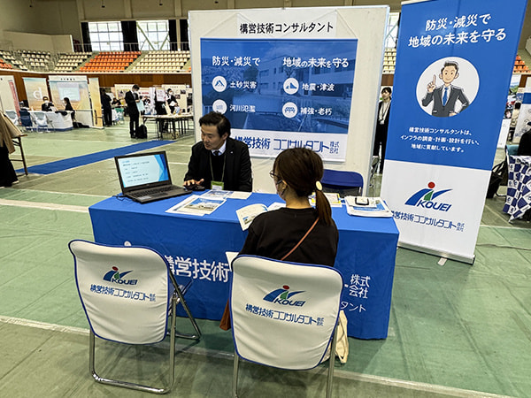 令和7年11月11日(火)高知高専第2体育館にて、高知高専主催の「第8回県内企業研究会」が開催され、当社から採用担当の峯川と高専OGの富田さんが参加しました。