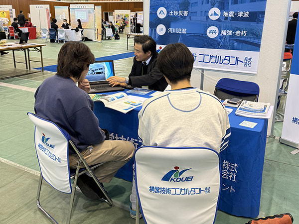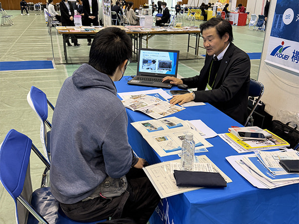 令和5年12月2日(土)、高知工科大学主催「学内合同業界研究セミナー」が香美キャンパスにて開催され、当社から峯川・黒岩主任の2名が参加しました。