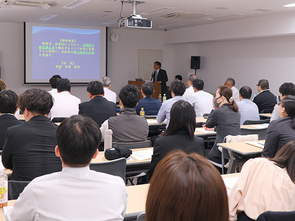 社員総会は、県民文化ホールにて開催され、「経営理念、第39期の総括と第40期の事業計画」の発表を行い、その後、各部署・各社員から第40期の目標、取組みについての発表を行いました。