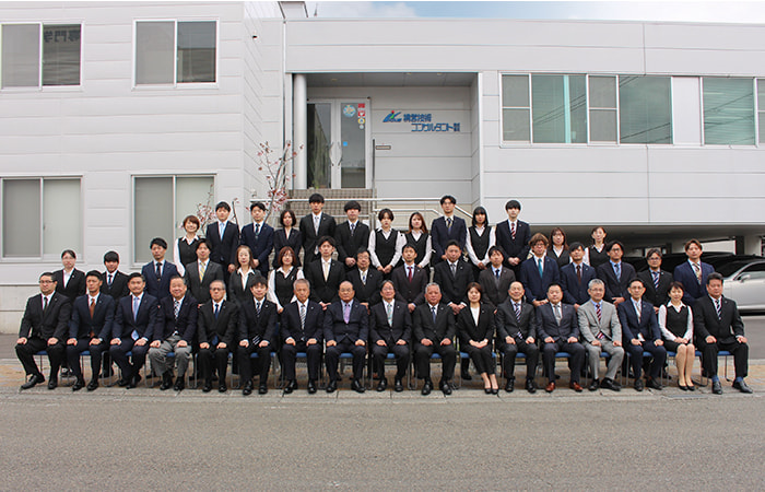 入社式後は、社屋前にて恒例の記念撮影を行いました。