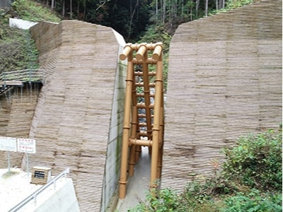 周辺環境に配慮するため堤体を石積み模様でデザインした、おしゃれな砂防堰堤が完成しました。