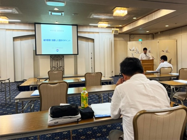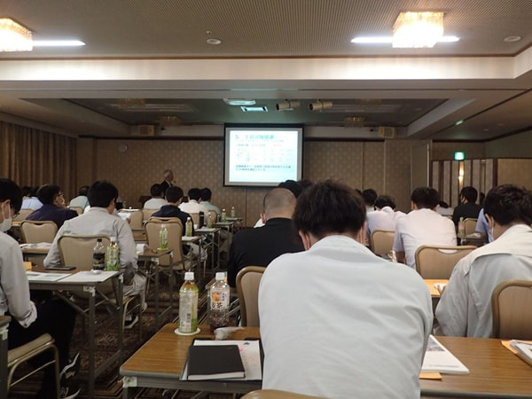 令和5年8月30日にガラス発泡資材事業協同組合主催「スーパーソル技術講習会」が開催され、技術1部技術2課の永井さん、技術3部技術1課の川村さん、営業部営業課の高橋さん、技術2部技術1課の富川が参加しました。