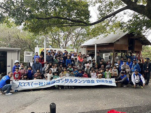 令和5年11月12日(日)、高知市朝倉己のアジロ自然の森にて、(一社)建設コンサルタンツ協会四国支部高知県部会主催にて『アジロ山』自然体験が行われ、準備作業やイベントの運営に当社より長谷部調査役・白井次長・峯川次長・井原主任・黒岩主任が参加しました。