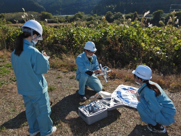 令和5年11月22日(水)、国土交通省主催「令和5年度高知ブロック無人航空機(UAV)合同操作訓練」に、谷末さん、富川さん、富田さんが参加しました。