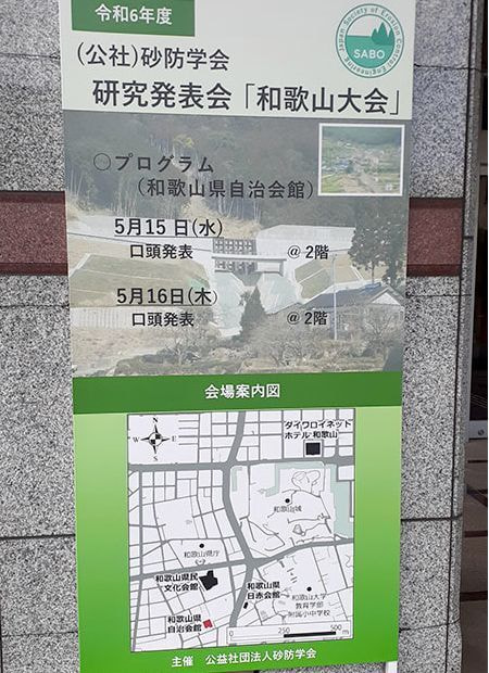 令和6年5月15日(水)、16日(木)、和歌山県民文化会館、和歌山県自治会館、和歌山県日赤会館の3会場にて(公社)砂防学会研究発表会「和歌山大会」が開催され、当社より技術1部の野並部長・吉岡次長・野中課長・今西主任・山本主任・大久保が参加しました。