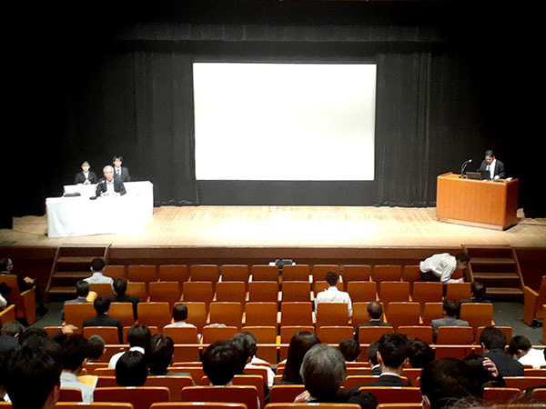 令和6年12月14日(土)、高知工業高等専門学校第二体育館にて高知工業高等専門学校主催「高知高専生のための進路研究セミナー」が開催され、午前の部に当社から峯川部長、黒岩が参加しました。