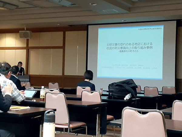 本大会では「土砂災害の恐れのある地区における住民の防災意識向上の取り組み事例-福島県石川町その3-」の口頭発表を聞くことができ、またダイワロイネットホテル和歌山で開催された意見交換会にも参加することができました。