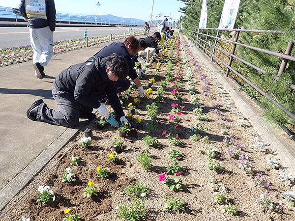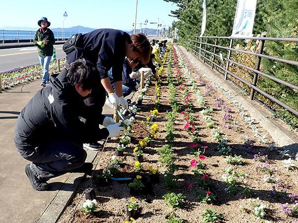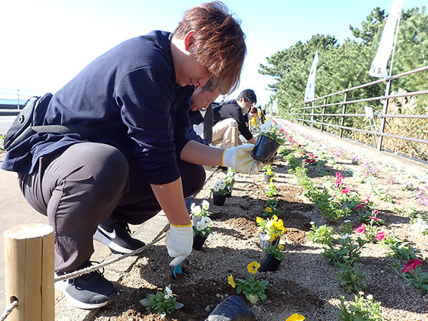 令和6年12月1日(日)、桂浜花海道(県道春野赤岡線)にて、桂浜花海道推進連絡協議会主催の「花いっぱい運動」が開催され、当社から谷岡さん、川村さん、大野の3名が参加しました。