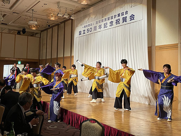そして、行事の最後には、記念祝賀会が開催され、来賓の方々の中には県外からご出席いただいている方もいらっしゃるということもあり、食事ではカツオのたたきが振舞われたり、よさこい踊りの演舞があったりと50周年に相応しい大変盛大な祝賀会となりました。