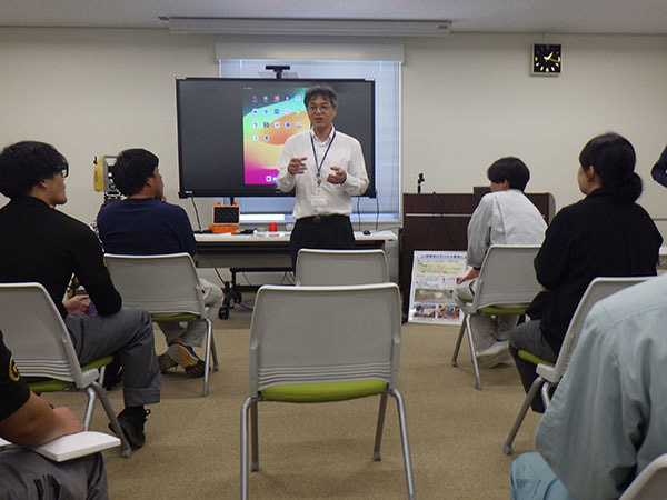 本講習会では、実際にGIS(地理情報システム)を利用されている県内の企業、メーカー及び大学の活用事例を通して「GISの概要を知る」とともに、実際にスマートフォンの現地調査アプリを用いて現地情報の記録を行い「GISに触れる」フィールドワークを実施しました。