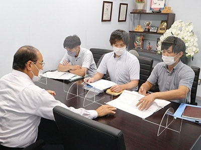 2~3年後技術士の取得を目指す社員のサポートとして、2週間に1回程度数グループに分かれて行っております。
