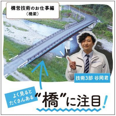 私たちの仕事は、道路、橋、砂防ダム、トンネル等の公共施設の計画・設計を行うことです。